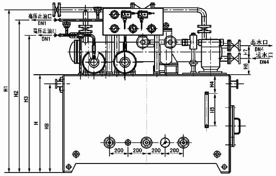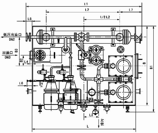 本產(chǎn)品組成部分也和普通高(低)壓稀油站相同;僅比它多一臺高壓油泵,二臺高壓油泵的吸口均聯(lián)于低壓泵的供油口;二臺高壓泵均啟動時,要從低壓供油口吸走5L/min的潤滑油,對低壓泵流量較小者,啟動高壓泵時低壓供油壓力可能會有所降低,對潤滑油均供向同一軸承的系統(tǒng)來說,軸承的潤滑油總量并未減少,不會影響對軸承的潤滑;但啟動高壓泵時,低壓壓力的降低可能造成備用低壓泵會臨時啟動,這種情況也不致影響潤滑系統(tǒng)的正常工作;但采用二低壓泵互相切換的備用工作方式時,可能工作泵停止后,備用泵流量仍不滿足要求時就不能使?jié)櫥到y(tǒng)正常工作了;故選用較小流量低壓泵時應注意這一情況。